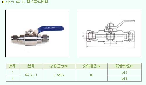 •   產(chǎn)品名稱:ZY9-1 QG.Y1 型卡套式球閥